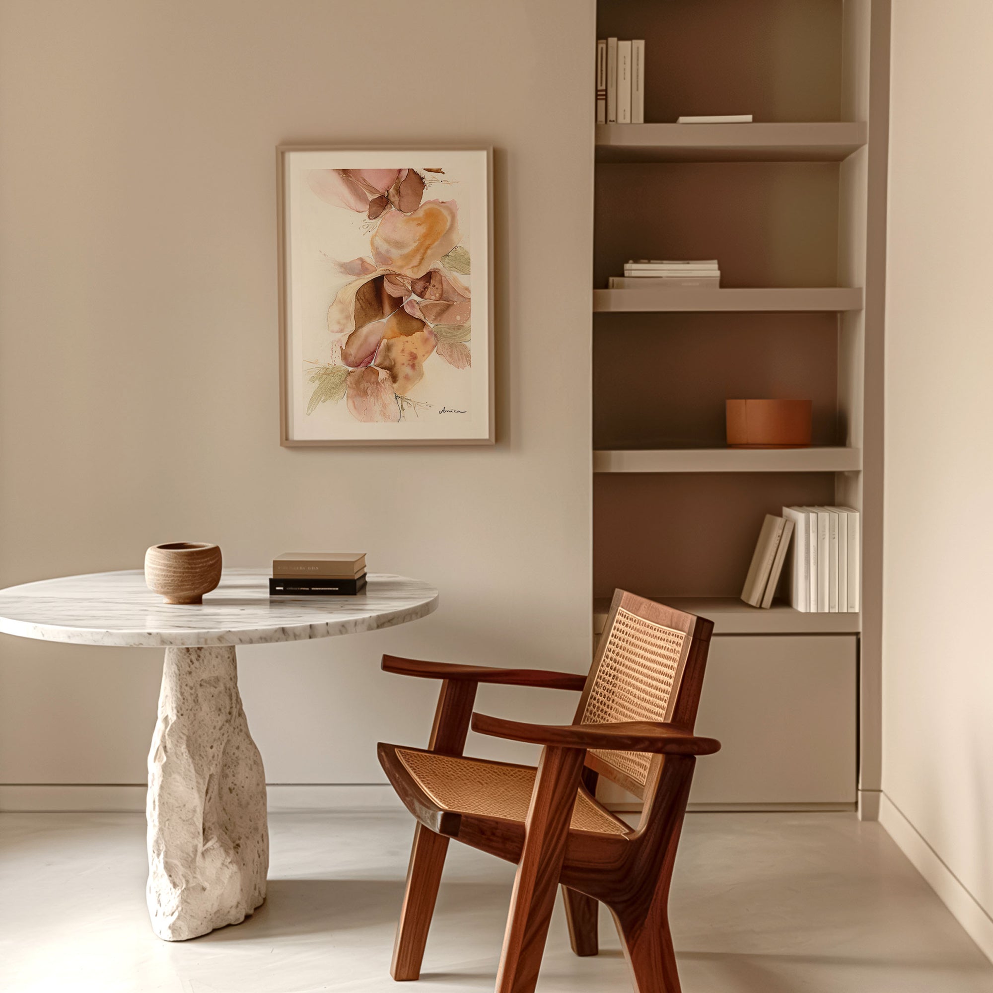 Refined abstract works that calm the nervous system and act as emotional architecture in considered spaces.
