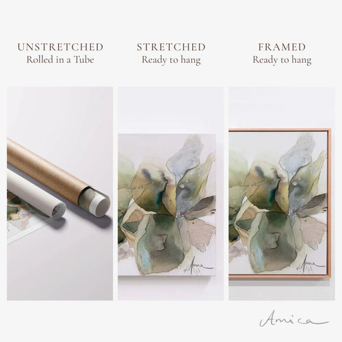 Your artwork is supplied as a high‑quality rolled canvas print, packaged in a protective tube. Perfect if you'd like your own framer to stretch or frame it to your specifications.